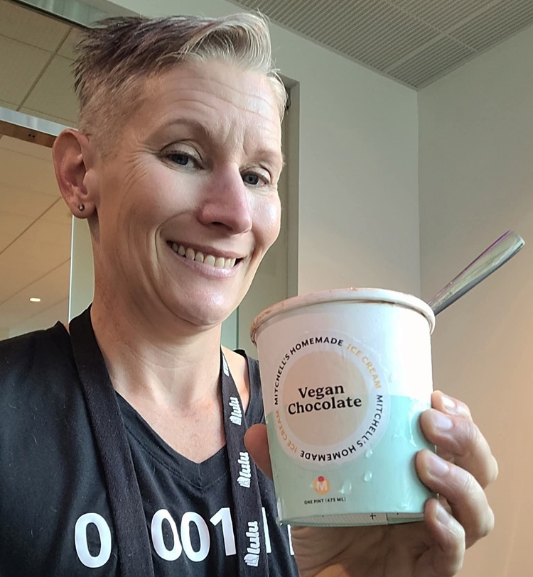 Sometimes an off-handed comment inspires an act of awesomeness – When I was invited to speak at the Creator Economy Expo (CEX), I jokingly said the speakers’ lounge should be stocked with Mitchell’s ice cream. At CEX, one of the staff members brought me a pint of Mitchell’s vegan chocolate ice cream at the speakers’ party. It’s so good – rich like chocolate mousse.